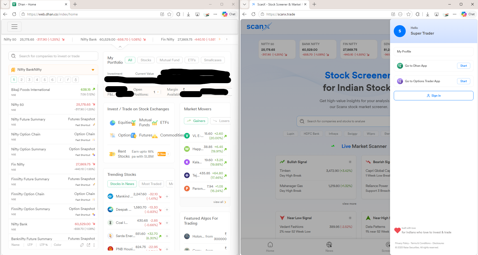 Hi @anwarultqm @vishaln @Shally Please note that if you already have a logged in session on Dhan, you can go from that to ScanX in a logged-in way.