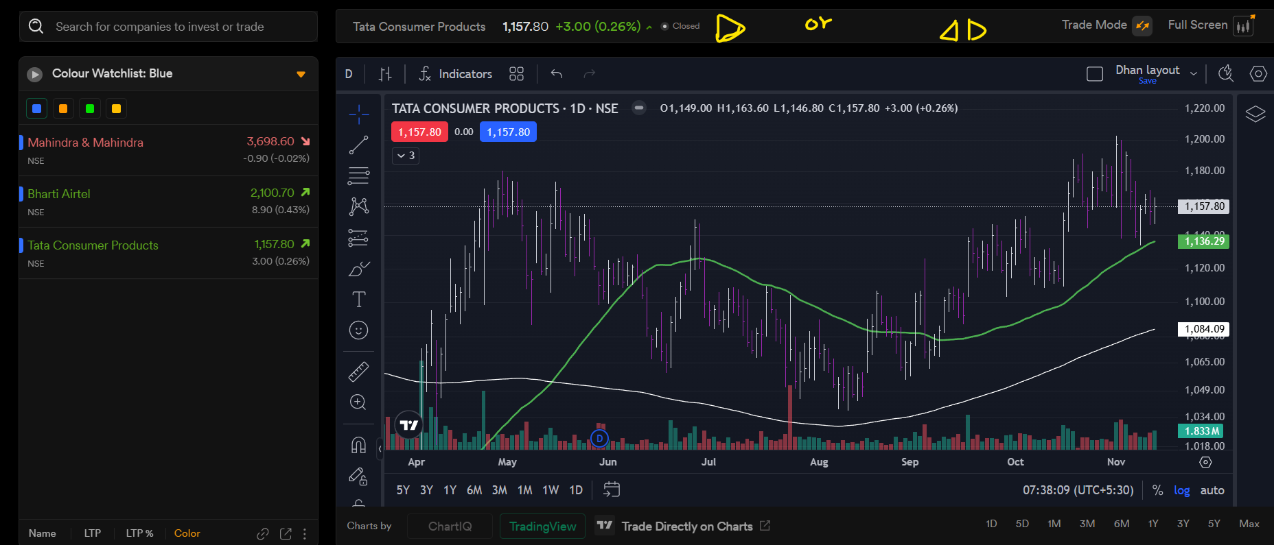 But issue is that tv.dhan.co dont show my colour watchlist and in Dhan web i can’t see charts one after another.