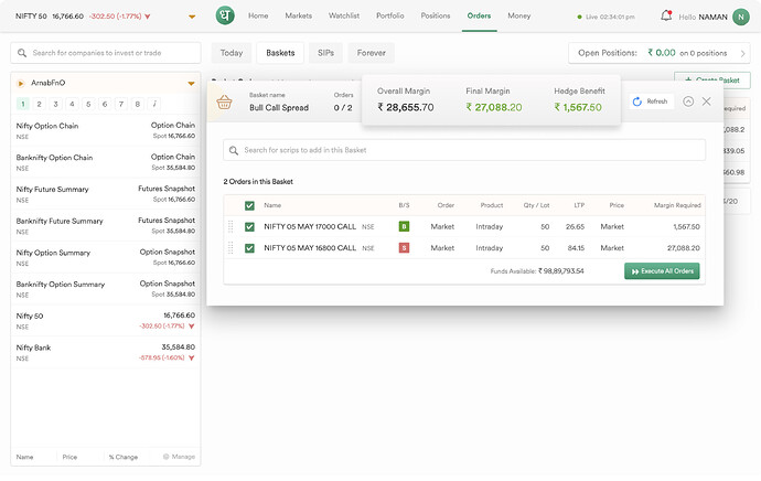 @Naman buy is supposed to executed first then sell order⦠Anyways I refer your link⦠Is basket order feature useful or not? It is mentioned to place order manually.