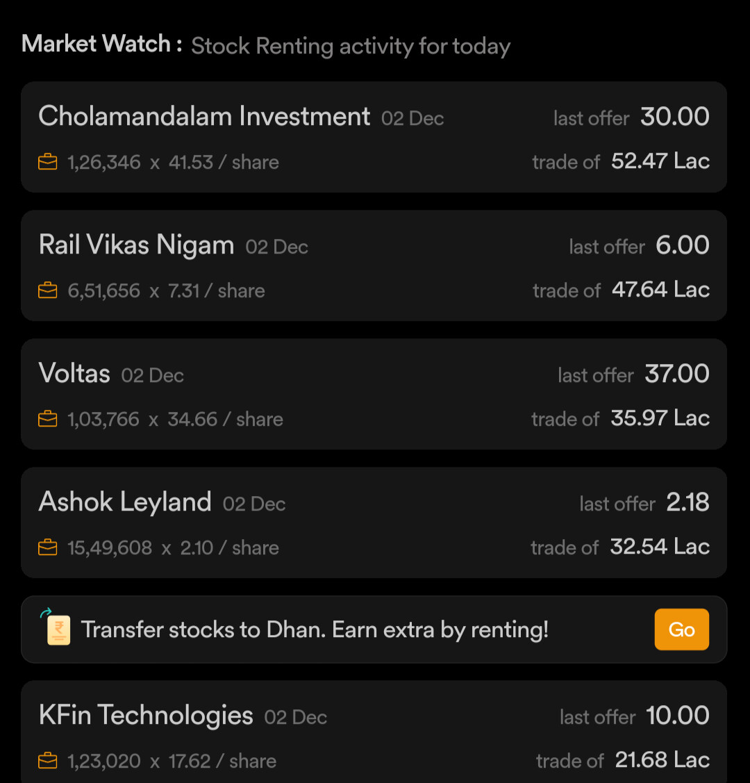 I just now got the Rent stocks option on Dhan app, checked it without activating.