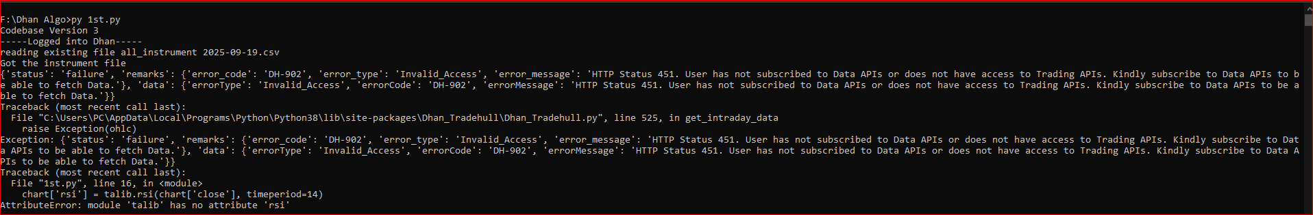 Secondly, the previous errors show that you have not subscribed the Dhan historical data subscription.