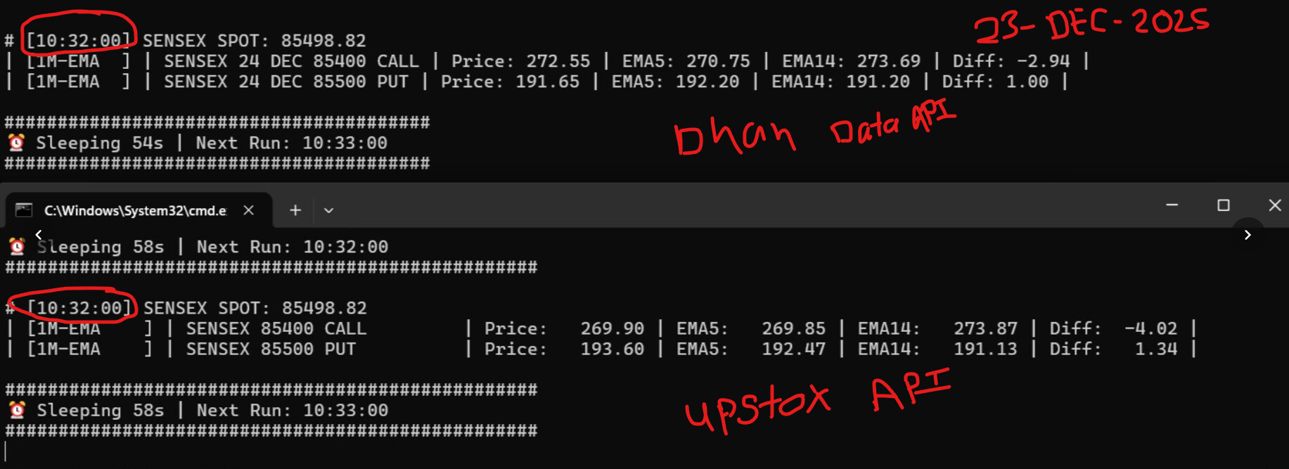 Comparison with Competitors: At the same time, I am testing the Upstox API (which is offered for free), and it is providing faster, more stable, and accurate data.