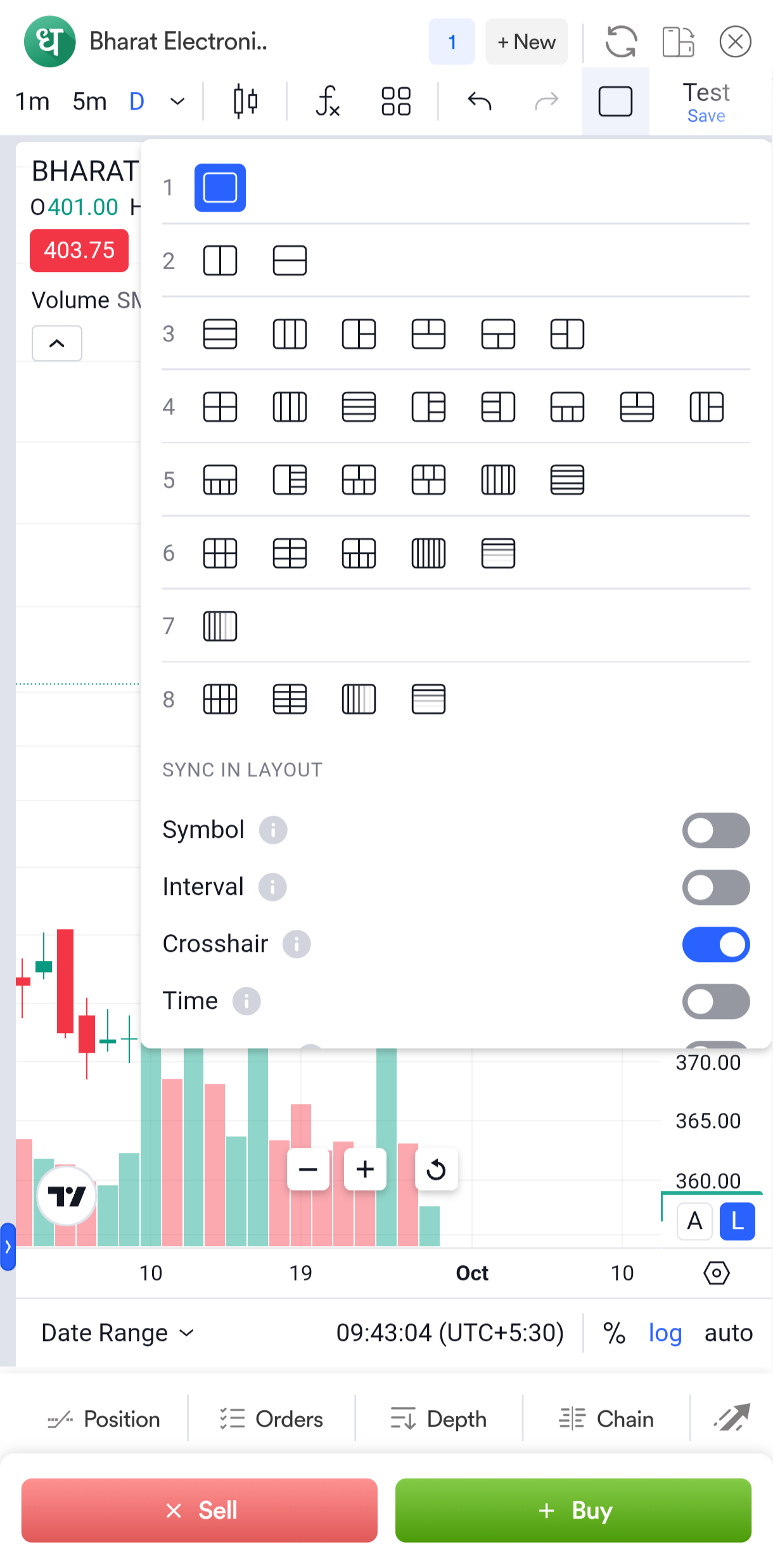 To view two charts at once on the mobile app, just click on Dhan layout option attcahed screen below for reference.