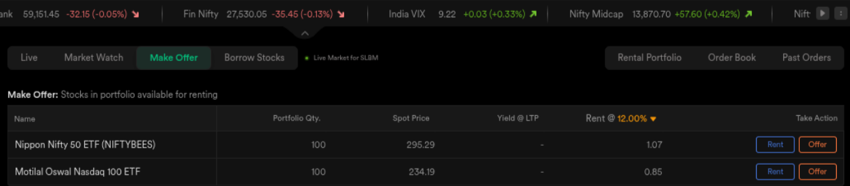 Hi @SmallCapHunter, We do not charge any brokerage on SLBM rent and borrow transactions. You only need to activate the SLB segment with a one-time activation fee of ₹199, which will be debited from your Dhan ledger. After activation, you can start renting and borrowing shares.