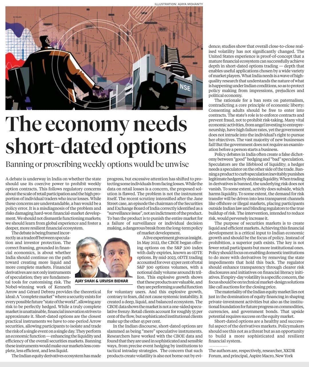 The issue isn’t weekly options themselves, but how the debate has been framed. Rather than seeing it purely as speculation vs. investor protection, the authors suggest the real question is whether India wants deeper, more liquid, more complete markets. Business Standard - Speculation Isn’t Always Bad