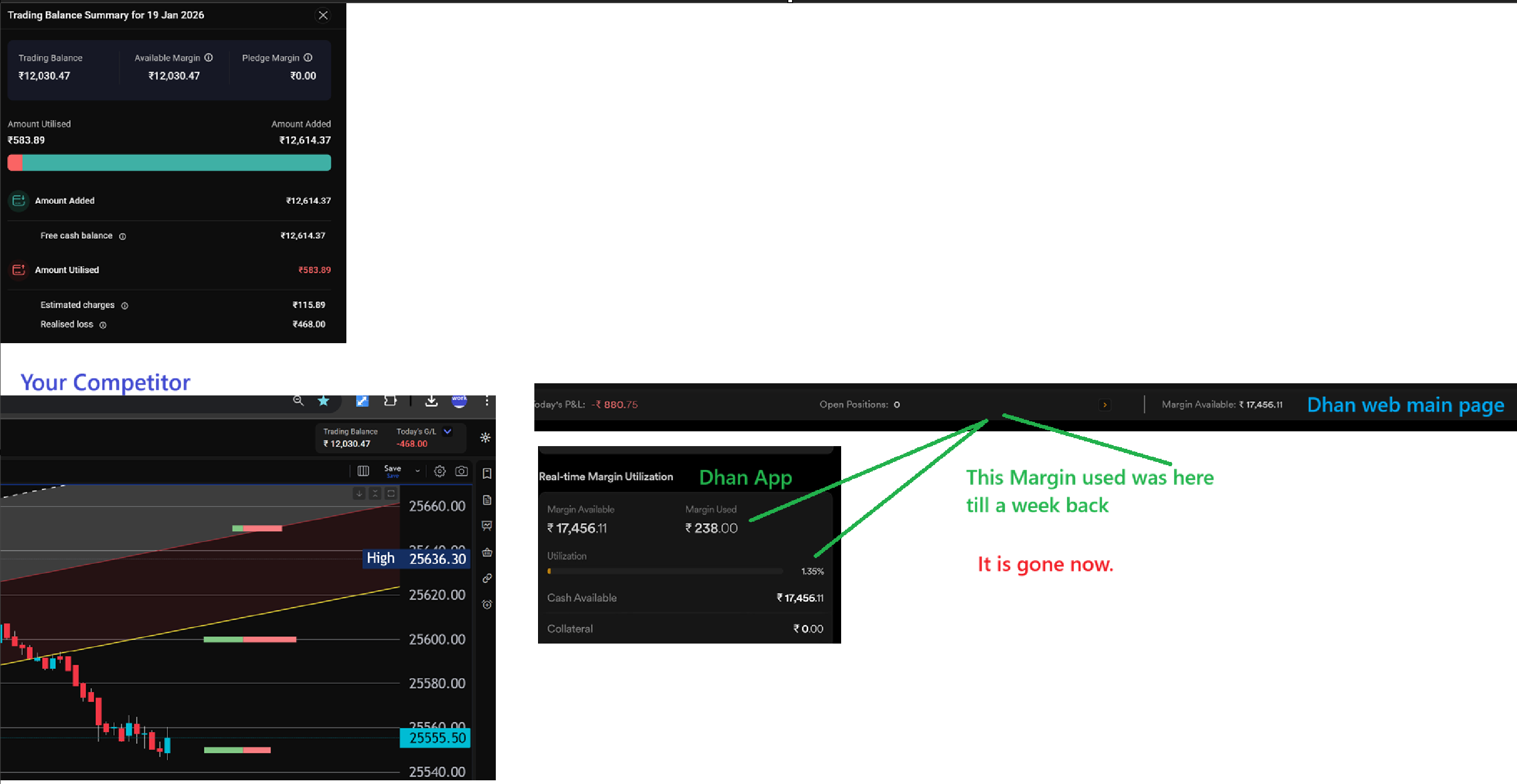 Also why @Dhan is so reluctant to show a clean and clear live P/L / Expense or used margin on live chart. (without extra clicks/slide up/dn etc. ) , Donât we all trade for Profits?